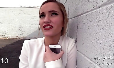 Lewd gamine blond head Lily Rader goes interracial in the gloryhole room
