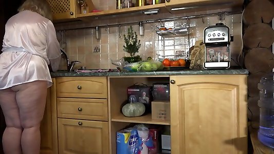 kaffee kochen für ehemann, reife riesige boobed plus-size hausfrau