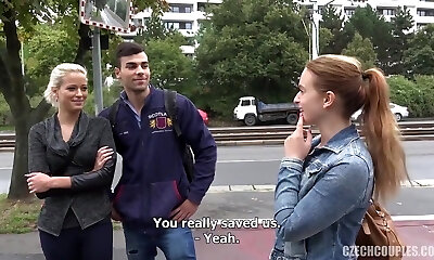Luscious young German blonde Helena Moeller takes part in couple 3 way orgy